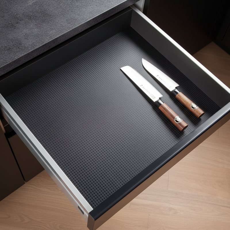 • Möglichkeit zur Anpassung – die Matte kann einfach für andere Schubladentypen zugeschnitten werden