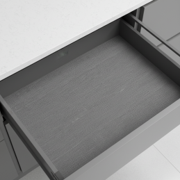 Die hochwertige und strapazierfähige rutschfeste Matte in modernem grauen Design ist so konzipiert, dass sie den Inhalt der Schubladen an Ort und Stelle hält und gleichzeitig deren Boden vor Kratzern und Verschmutzungen schützt. Dank des universellen Designs und der präzisen Formatierung passt sie perfekt in Schubladen mit hohlen, schmalen Seitenwänden des Systems LEGRABOX, kann aber bei Bedarf auch einfach für andere Schubladentypen angepasst werden.