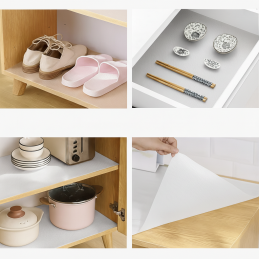 Die Matte kann einfach auf die gewünschte Größe zugeschnitten werden – schneiden Sie sie einfach mit einer Schere entsprechend der Größe der Schublade oder des Regals zu. Dank der weißen Ausführung wirkt sie sauber und universell und passt in jedes Interieur.
