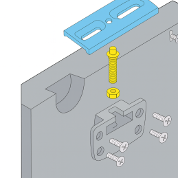 Die seitliche Befestigung ist für die Montage des oberen Rads der Schiebetür vorgesehen. Sie wird vor allem dann verwendet, wenn die Tür schwerer ist oder die Gefahr besteht, dass sich das Rad bei einer normalen oberen Befestigung löst oder abbricht.