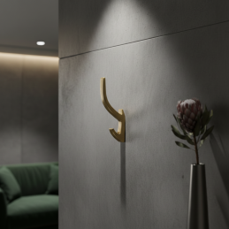 Der stilvolle und elegante KOS-Kleiderhaken in antik-goldener Ausführung verleiht dem Interieur einen Hauch von Luxus und klassischer Eleganz. Die sanft abgerundete Form und der doppelte Haken ermöglichen das praktische Ablegen von Kleidung, Handtüchern oder Accessoires. Die Oberfläche „Antik-Gold” sorgt für ein raffiniertes, leicht patiniertes Aussehen, das sowohl für traditionelle als auch moderne Räume geeignet ist.