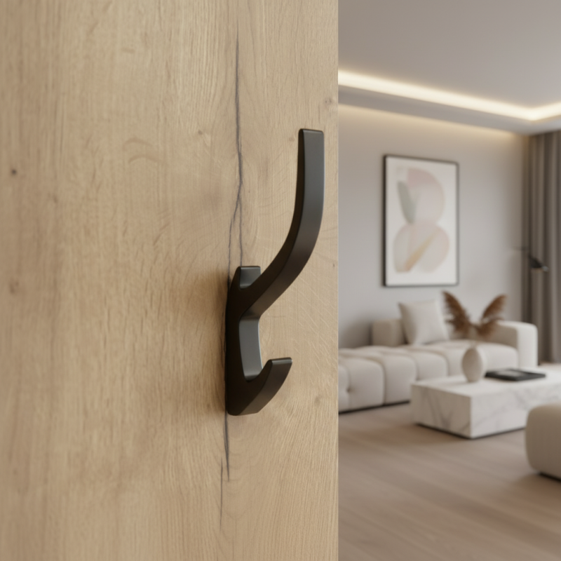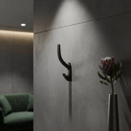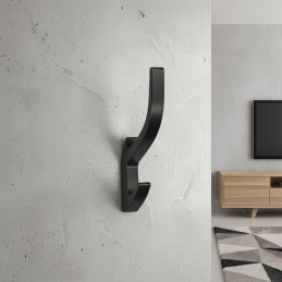 Der elegante und moderne KOS-Kleiderhaken in mattem Schwarz ist die ideale Ergänzung für jedes Interieur. Seine zeitlose Form wirkt stilvoll und zugleich sehr praktisch — er bietet zwei Haken zum Aufhängen von Kleidung oder Accessoires.