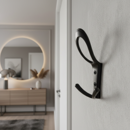 Der Haken ist für die Frontmontage an Wand oder Möbeln bestimmt. Im Lieferumfang sind Montageschrauben in der Farbe des Hakens enthalten, die das Gesamtbild nicht stören und ein sauberes, ästhetisches Ergebnis gewährleisten. Die hochwertige Metallverarbeitung garantiert Festigkeit, Stabilität und eine lange Lebensdauer auch bei täglichem Gebrauch.
