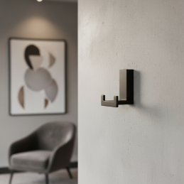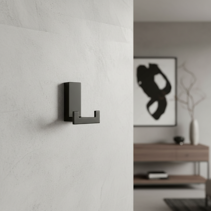Eleganter und kompakter Design-Kleiderhaken, geeignet für moderne Innenräume. Dank der minimalistischen Form ist er ideal für Flure, Badezimmer, Garderoben oder Möbel, bei denen Wert auf ein sauberes Aussehen und Funktionalität gelegt wird.