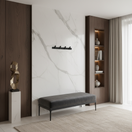 AVALION XL ist eine moderne und praktische Wandgarderobe mit klarem, industriellem Design, die ausreichend Platz zum Aufhängen von Kleidung, Taschen oder Accessoires bietet. Dank des verlängerten Körpers und mehrerer Haken ist sie ideal für Flure, Ankleidezimmer, Büros, Schlafzimmer oder gewerbliche Räume.
