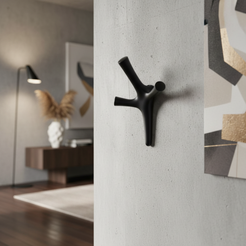 Der ALAN Haken ist ein praktisches und zugleich designorientiertes Element, das dem Interieur einen modernen Charakter verleiht und hilft, Ordnung zu halten.