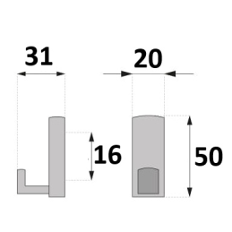 Kompakte Abmessungen - Höhe 50 mm, Breite 20 mm, Tiefe 31 mm, ideal für einen unauffälligen, aber stabilen Aufhänger.