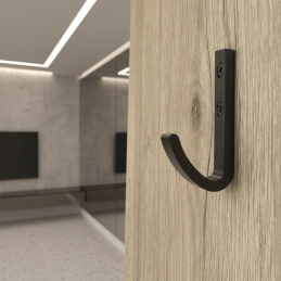 FIT Mini ist ein einfacher und moderner Möbelhaken in der Ausführung schwarz matt, der sich durch ein klares Design und vielseitige Einsatzmöglichkeiten auszeichnet. Dank seiner kompakten Maße ist er besonders für kleinere Räume, Möbel, Türen, Wände oder die Seitenwände von Schränken geeignet.