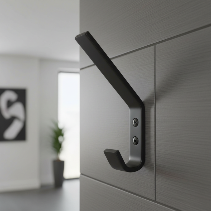 Design-Wandaufhänger mit Frontbefestigung mit Schrauben in der gleichen Farbe wie der Aufhänger