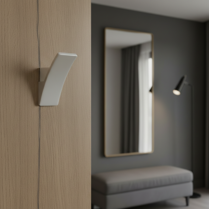 Moderner und eleganter Haken in matter Chromausführung, der dank seiner minimalistischen Form sehr vielseitig wirkt. Er kann nicht nur als Haken, sondern auch als Möbelgriff – Knopf dienen. Seine Form bietet einen bequemen Griff und die Tiefe von 35 mm ermöglicht eine praktische Nutzung.