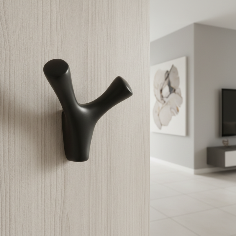 Die Garderobe YPSILON in schwarzer, matter Ausführung stellt ein elegantes und zeitloses Element dar, ideal für moderne Innenräume. Die an den Buchstaben Y erinnernde Form ermöglicht ein bequemes Aufhängen von Kleidung, Taschen oder Accessoires. Sie ist aus hochwertigem, widerstandsfähigem Material mit glatter Oberfläche gefertigt, die eine lange Lebensdauer und eine angenehme Haptik garantiert.