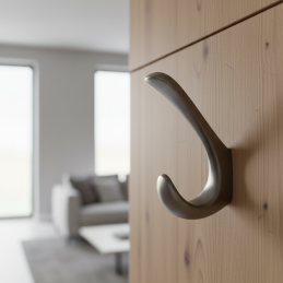 Der elegante und moderne Kleiderhaken MANAL in trendiger Anthrazit-Oberfläche ist ein Design-Accessoire, das dem Raum ein raffiniertes und zeitloses Aussehen verleiht.