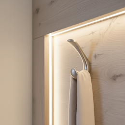 Moderner und eleganter Garderobenhaken MANAL in der Ausführung Edelstahl ist ein Designelement, das dem Interieur ein klares, technisches und zeitloses Aussehen verleiht.
