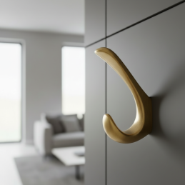 Der luxuriöse und moderne Kleiderhaken MANAL in der Oberfläche gebürstetes Gold verleiht jedem Interieur ein elegantes, hochwertiges und raffiniertes Aussehen.