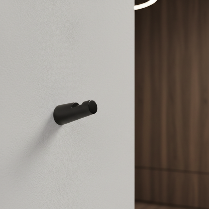 Der moderne Wandhaken ORTEGO in mattem Schwarz besticht durch klare Linien und ein kompaktes Design. Dank seiner minimalistischen Form ist er ideal für moderne, industrielle und zeitlose Innenräume.