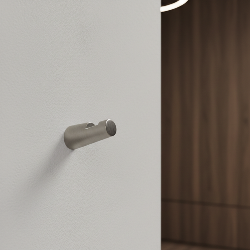 Moderner Wandhaken ORTEGO in Ausführung Edelstahl matt bietet ein zeitloses Aussehen und hohe Widerstandsfähigkeit. Die matte Oberfläche aus rostfreiem Stahl wirkt elegant, professionell und ist ideal für Innenräume, in denen Wert auf Detailreinheit und Funktionalität gelegt wird.