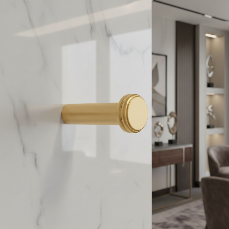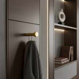Die Garderobe NURIA in der Ausführung gebürstetes Gold verleiht dem Interieur ein luxuriöses und zeitloses Aussehen. Ihre klare zylindrische Form, ergänzt durch einen feinen dekorativen Ring, wirkt elegant und harmonisch, wodurch sie sich für moderne Badezimmer, Flure, Ankleidezimmer und Schlafzimmer eignet. Die Oberfläche in gebürstetem Gold sorgt für einen angenehmen warmen Farbton und behält gleichzeitig eine hohe Widerstandsfähigkeit und einfache Pflege bei.