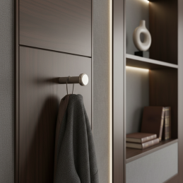 Der NURIA Kleiderhaken in der Ausführung gebürstetes Nickel ist ein elegantes und praktisches Accessoire für moderne Innenräume. Seine klare zylindrische Form mit einem dezenten dekorativen Ring wirkt zeitlos und fügt sich harmonisch in Badezimmer, Flure, Küchen oder Schlafzimmer ein. Die Oberfläche aus gebürstetem Nickel verleiht dem Haken ein luxuriöses Aussehen, ist verschleißfest und leicht zu pflegen.
