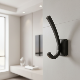 Eleganter und charakterstarker PORTAS Kleiderhaken in der Ausführung schwarz matt ist für Innenräume konzipiert, in denen es auf Details ankommt.