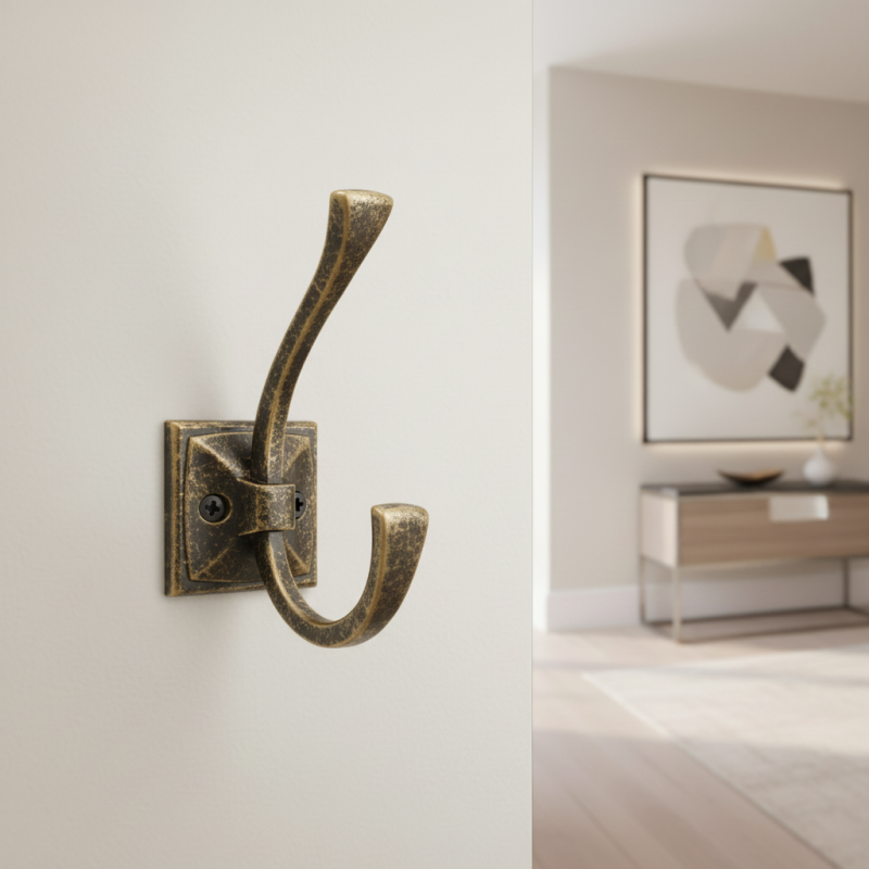 👉 Kleiderhaken MALAGA / Alt-Messing ist die ideale Wahl für alle, die ihrem Interieur eine warme, elegante und historische Note verleihen möchten, ohne Kompromisse bei der Funktionalität einzugehen.