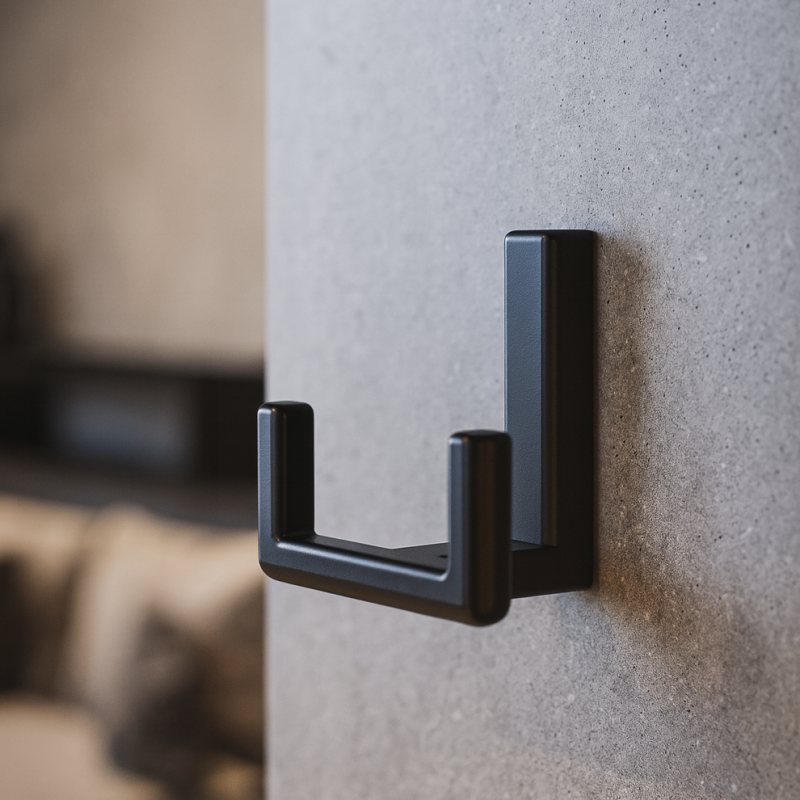 Der Haken ist mit zwei stabilen Haken ausgestattet, die das gleichzeitige Aufhängen mehrerer Gegenstände ermöglichen – Mäntel, Jacken, Handtaschen, Schlüssel oder Handtücher.