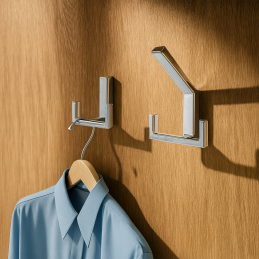 Der Haken ist mit zwei stabilen Haken ausgestattet, die das gleichzeitige Aufhängen mehrerer Gegenstände ermöglichen – Mäntel, Jacken, Handtaschen, Schlüssel oder Handtücher.