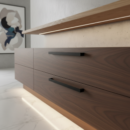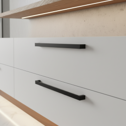 Verleihen Sie Ihren Möbeln einen Hauch von Pep mit dem Griff MONICA, der klares Design mit hochwertiger Handwerkskunst verbindet. Dank seiner 4 verschiedenen Längen passt er perfekt auf Küchenschränke, Schränke und Schubladen. Seine kompakten Abmessungen - 20 mm breit und 26 mm hoch - machen ihn zu einem stilvollen und zugleich funktionalen Accessoire.