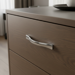 Der Griff NICOLA in Edelstahloptik ist ein modernes, universelles und äußerst praktisches Accessoire für Küchen, Bäder, Kommoden oder Kleiderschränke. Seine elegant geschwungene Form bietet einen bequemen Griff und verleiht den Möbeln einen dezenten dynamischen Akzent, der modern und ausgewogen wirkt. Die Edelstahloberfläche ist bekannt für ihre Widerstandsfähigkeit, einfache Pflege und zeitlose Optik, weshalb sie zu den beliebtesten Materialien im Innendesign gehört.