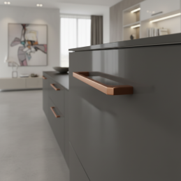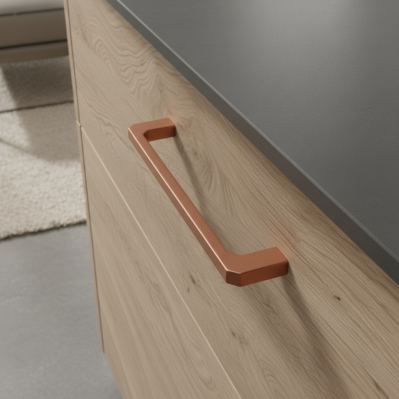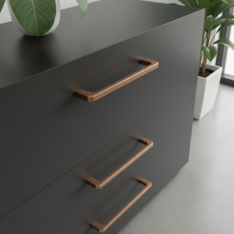 Der Design-Griff ist die ideale Wahl für moderne und rustikale Innenräume. Dank seiner zeitlosen Form und der hochwertigen Verarbeitung verleiht er jedem Möbelstück ein luxuriöses und elegantes Aussehen.