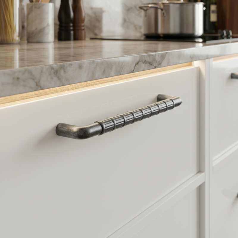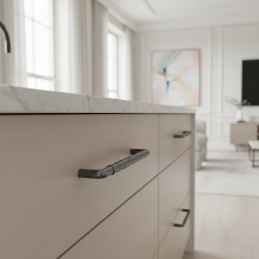 Der TAU-Griff in Alt-Schwarz ist die ideale Wahl für Kunden, die ein hochwertiges, designstarkes und charaktervolles Accessoire für moderne und industrielle Möbel suchen.