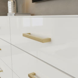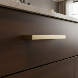 Der elegante Möbelgriff ZETA in goldener Ausführung ist die ideale Wahl für moderne und klassische Innenräume. Sein klares, kantiges Design verleiht den Möbeln ein luxuriöses und zeitloses Aussehen und sorgt gleichzeitig für einen bequemen und festen Griff.