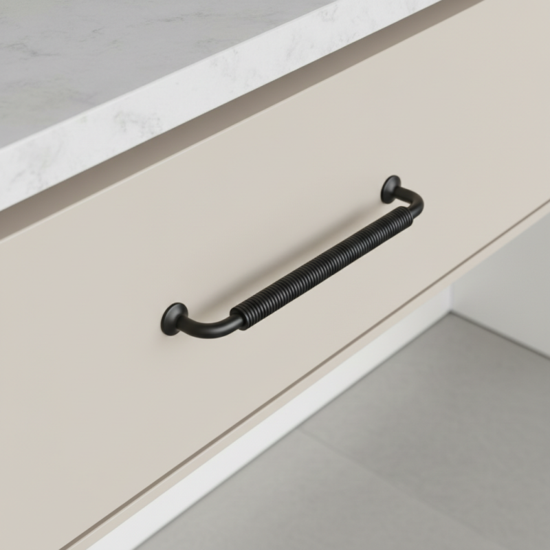Der STIGMA-Griff in schwarzer, matter Ausführung ist die ideale Wahl für Kunden, die ein hochwertiges, designstarkes und funktionales Detail für moderne Möbel suchen.