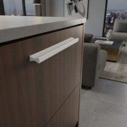 Der Griff PIREA in der Ausführung weiß matt bringt Reinheit, Minimalismus und zeitlose Eleganz in jedes Interieur. Sein schlankes, modernes Profil wirkt sehr dezent, bietet aber gleichzeitig einen komfortablen Griff. Die matte weiße Farbe ist universell und passt perfekt zu modernen sowie klassischen Oberflächen.