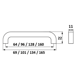 • Bohrabstand 96 mm / Gesamtlänge 101 mm