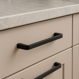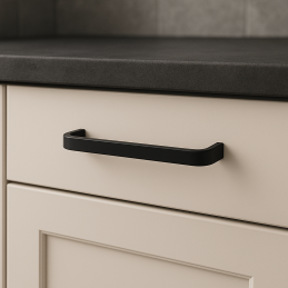 Der Design-Griff SAMBA in schwarzer, matter Ausführung ist die ideale Lösung für alle, die ein modernes, minimalistisches und zeitloses Accessoire für ihre Küche, ihr Bad oder ihr Wohnzimmer suchen. Dank seiner dezenten Form und der präzisen Verarbeitung ergänzt er jedes Möbelstück perfekt.
