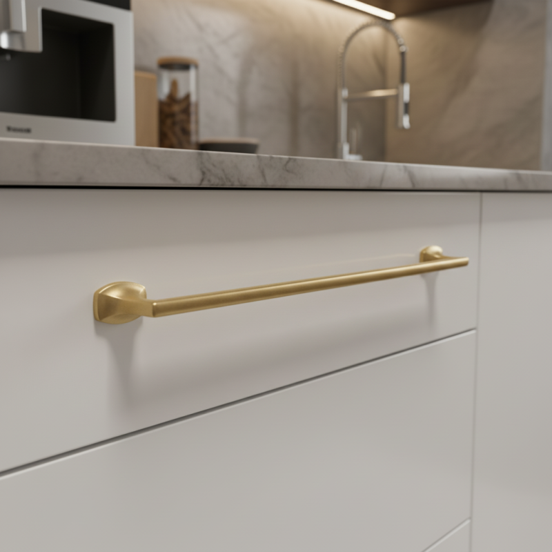 Der Griff AMADORA in eleganter Altgold-Optik ist ein modernes und zeitloses Accessoire, das Ihren Möbeln ein luxuriöses, zugleich aber auch sanftes und harmonisches Aussehen verleiht. Seine schlanke, minimalistische Form wirkt leicht und raffiniert, wodurch er sich hervorragend für moderne Küchen, Wohnzimmer, Ankleidezimmer und Bäder eignet.