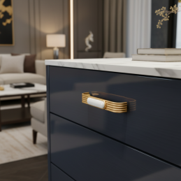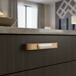 Der Keramikgriff FARO in Altgold-Ausführung ist die perfekte Wahl für alle, die ein markantes, elegantes und hochwertig verarbeitetes Accessoire suchen, das sich einfach auch mit einem stilvollen Knopf aus derselben Serie ergänzen lässt.