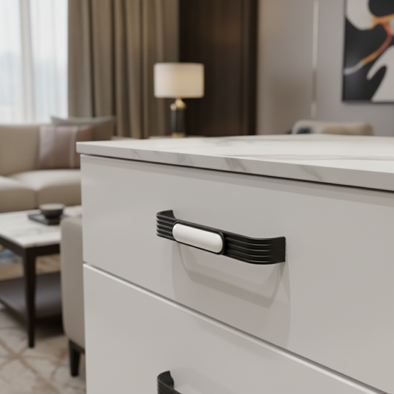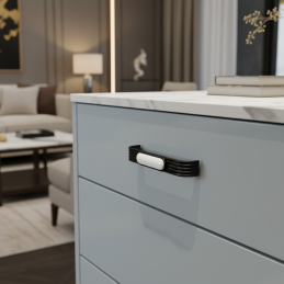Der Griff FARO ist ideal für Küchen, Kommoden, Badmöbel oder Interieurs im modernen, industriellen, skandinavischen sowie minimalistischen Stil. Dank des markanten visuellen Kontrasts wirkt er als Designakzent, der Aufmerksamkeit auf sich zieht. Die Möglichkeit, ihn mit einem Knopf im gleichen Design zu ergänzen, ermöglicht zudem die Schaffung einer einheitlichen und geschmackvoll abgestimmten Griffkollektion im gesamten Raum.