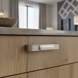 Der Griff FARO ist ideal für Küchen, Kommoden, Badmöbel oder Interieurs im modernen, industriellen, skandinavischen sowie minimalistischen Stil. Dank des markanten visuellen Kontrasts wirkt er als Designakzent, der Aufmerksamkeit auf sich zieht. Die Möglichkeit, ihn mit einem Knopf im gleichen Design zu ergänzen, ermöglicht zudem die Schaffung einer einheitlichen und geschmackvoll abgestimmten Griffkollektion im gesamten Raum.