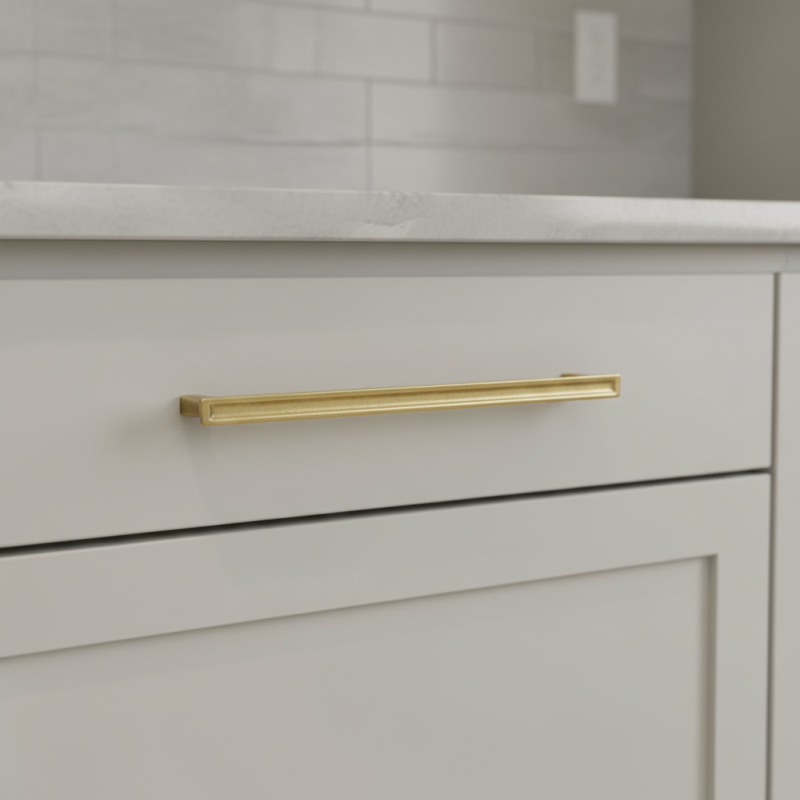 Der Griff SINTRA in mattem Gold ist die ideale Wahl für alle, die ein elegantes, hochwertig verarbeitetes und designorientiertes Accessoire suchen, das das Aussehen jedes Möbels aufwertet.
