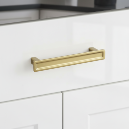 Der Griff SINTRA in elegantem mattem Gold-Finish ist ein stilvolles und zeitloses Accessoire für moderne sowie klassische Möbel. Seine dezent profilierte Form mit dekorativem Rahmen verleiht den Möbeln ein edles Aussehen ohne übertriebene Pracht. Die matte Goldfarbe wirkt luxuriös und zugleich dezent, wodurch sich der SINTRA-Griff hervorragend mit hellen und dunklen Dekoren, Holz oder lackierten Oberflächen kombinieren lässt.