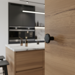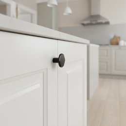 Die schwarze, matte Oberfläche verleiht dem Knopf einen markanten, aber dennoch dezenten Charakter. Er kommt sowohl auf hellen als auch auf dunklen Möbeln, auf Holz-, lackierten und matten Oberflächen schön zur Geltung. Der Knopf ist ideal für kleinere Türen, Schubladen oder Vitrinen und ermöglicht ein einheitliches Erscheinungsbild in Kombination mit den langen LAMEGO-Griffen.