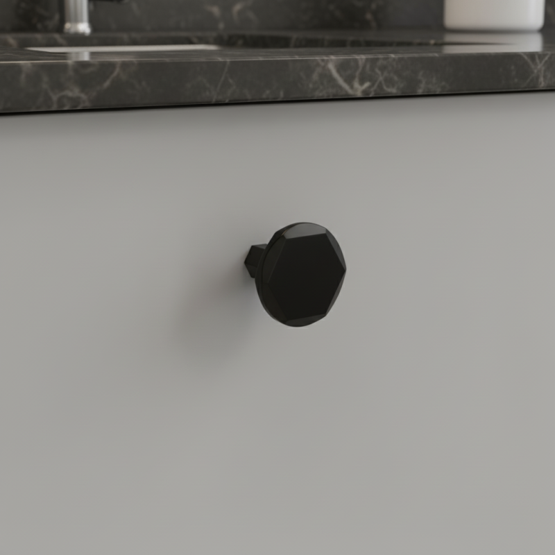 Der LAMEGO-Knopf in schwarzer, matter Ausführung ist ein elegantes und modernes Detail, das die großen LAMEGO-Griffe im gleichen Design perfekt ergänzt. Seine dezent facettierte Form wirkt luxuriös und zugleich zeitlos, wodurch er sowohl in moderne, industrielle als auch minimalistische Interieurs passt.
