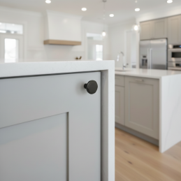Der LAMEGO-Knopf in schwarzer, matter Farbe ist die ideale Wahl für alle, die ein hochwertiges, modernes und designmäßig abgestimmtes Accessoire zu großen Griffen für ein harmonisches und stilvolles Interieur suchen.