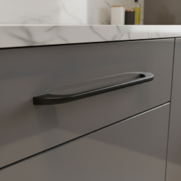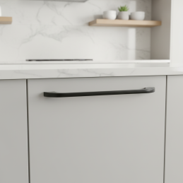 Der Griff DARA in schwarzer matter Ausführung ist eine elegante und minimalistische Lösung für moderne Möbel. Seine sanft gebogene Form und die schlanke Linie wirken leicht, zeitlos und sehr geschmackvoll. Die matte schwarze Farbe verleiht dem Griff ein anspruchsvolles Aussehen und schafft einen markanten Kontrast, der sowohl auf hellen als auch auf dunklen Türen, Holz und lackierten Oberflächen schön zur Geltung kommt.