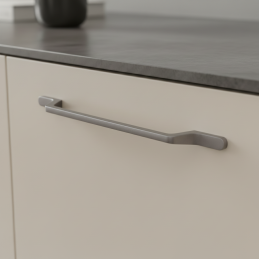 Der Griff ELIDA in Grau Satin ist die ideale Wahl für alle, die ein modernes, funktionales und elegantes Detail mit dezent technischem Look und langer Lebensdauer suchen.