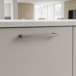Eleganter und zeitloser Möbelgriff mit klaren, geraden Linien in Edelstahloptik. Dank seines universellen Designs eignet er sich sowohl für moderne als auch klassische Innenräume – ideal für Küchenzeilen, Badmöbel, Schränke und Schubladen. Die Edelstahloberfläche wirkt dezent, ist widerstandsfähig und leicht zu pflegen.