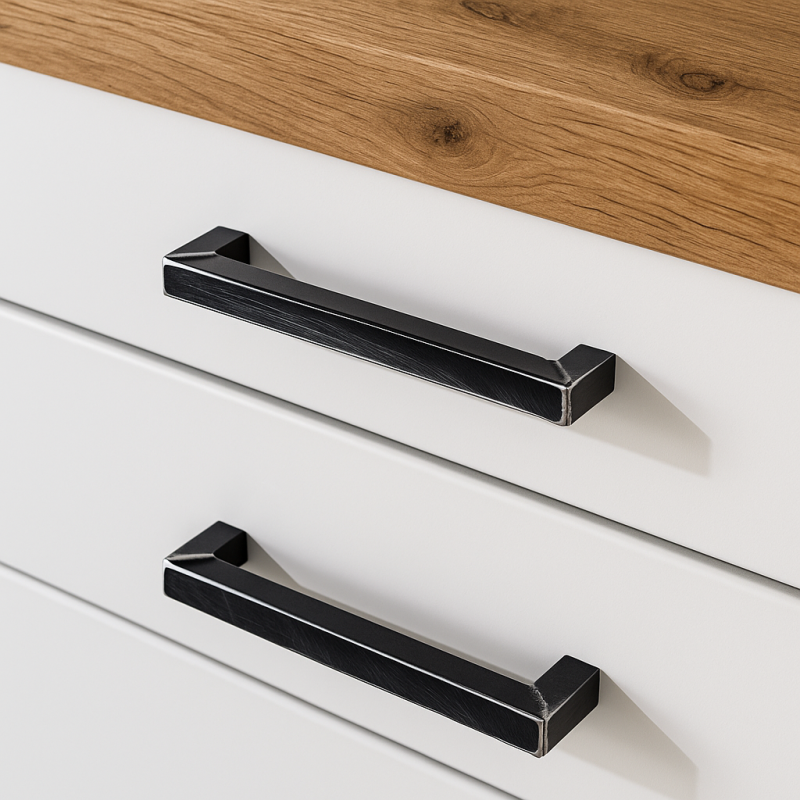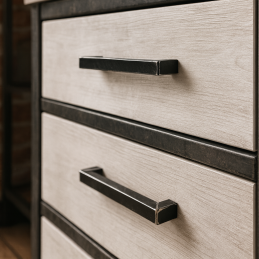 Das Design-Möbelgriff METAL in schwarzer Vintage-Farbe verleiht Ihrem Interieur einen Hauch von Industrial-Stil. Dank seiner robusten Verarbeitung ist er nicht nur eine ästhetische, sondern auch eine sehr praktische Lösung für Schränke, Schubladen oder Türen.