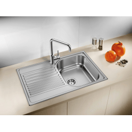 Blanco Tipo 45 S Compact stellt eine funktionale Lösung mit Schwerpunkt auf Platzersparnis ohne Kompromisse beim Komfort dar. Dieses Edelstahlspülbecken mit den Gesamtmaßen 780 × 500 mm ist für die Aufsatzmontage auf der Arbeitsplatte in einem Unterschrank mit einer Breite ab 45 cm vorgesehen.