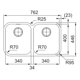 Maße der Becken: 2× 340 × 400 × 180 mm